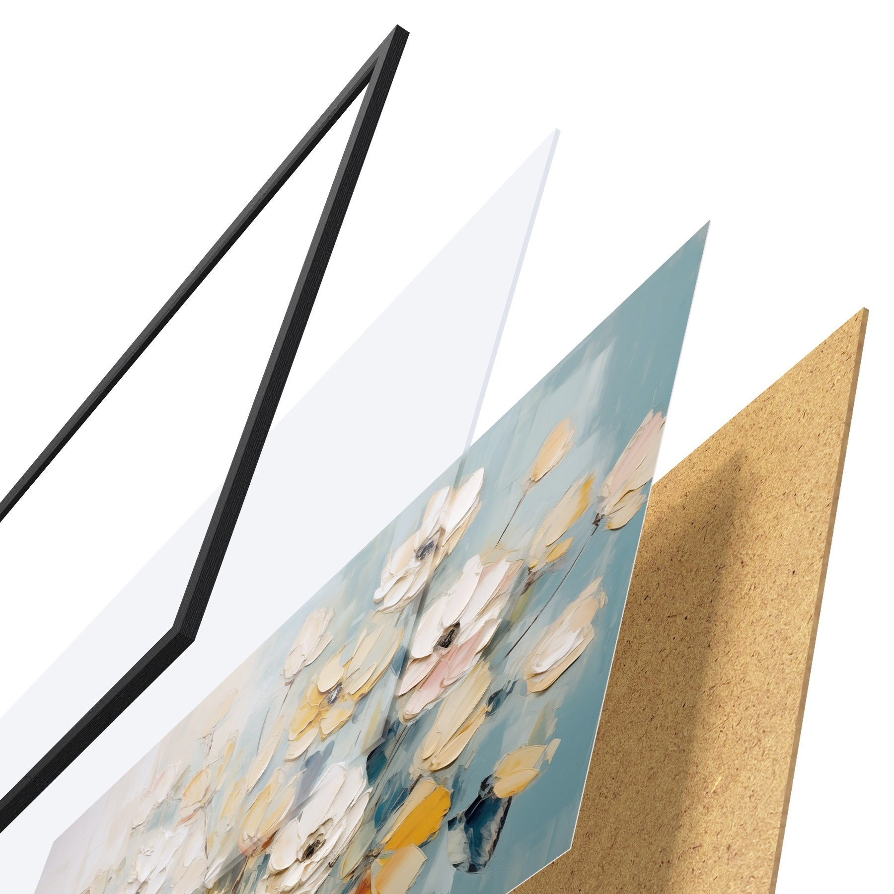 Le poster se compose d'un cadre, d'un plexiglas, d'une image imprimée et d'un support en aggloméré. Le poster peut être immédiatement accroché au mur grâce aux fixations au dos.