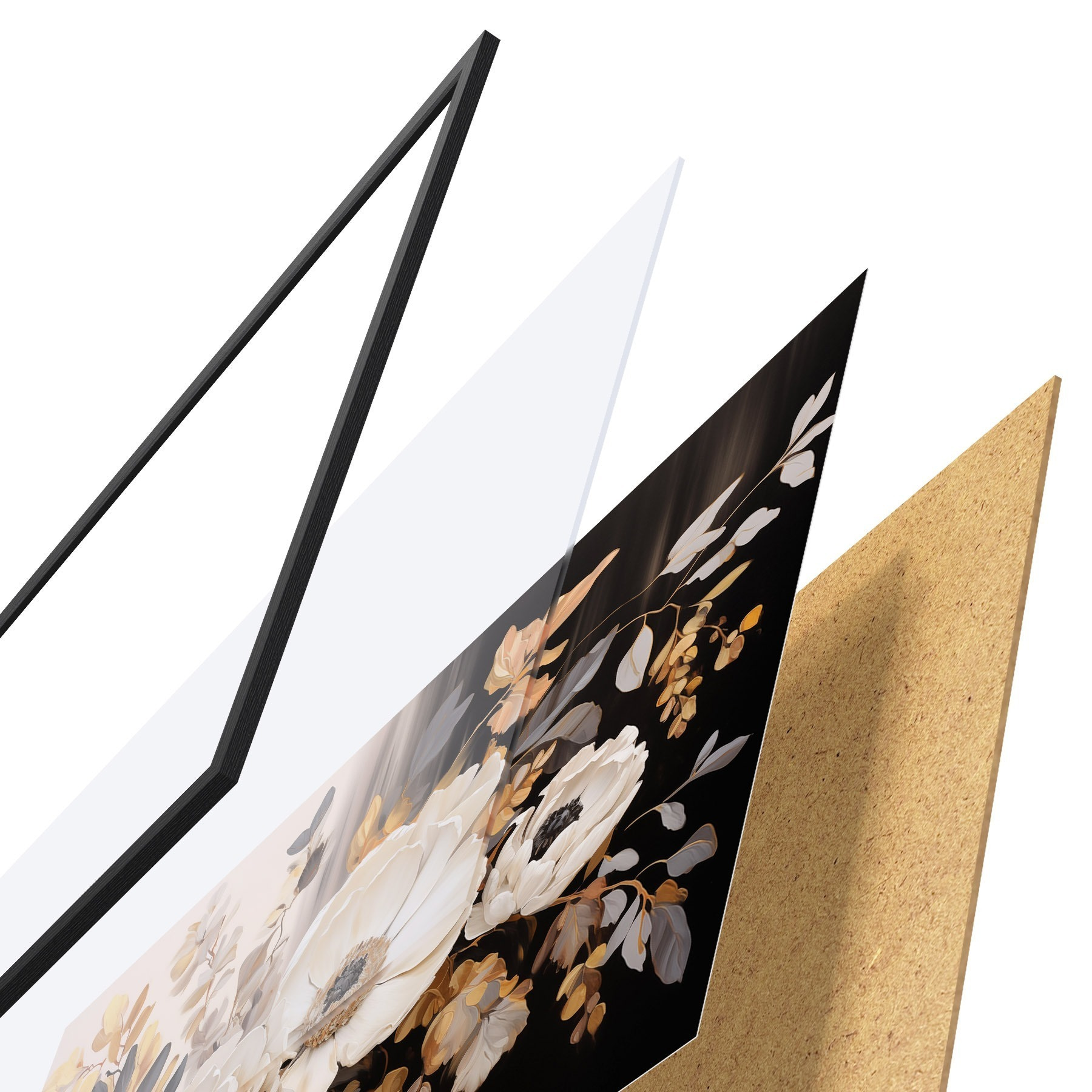 Le poster se compose d'un cadre, d'un plexiglas, d'une image imprimée et d'un support en aggloméré. Le poster peut être immédiatement accroché au mur grâce aux fixations au dos.