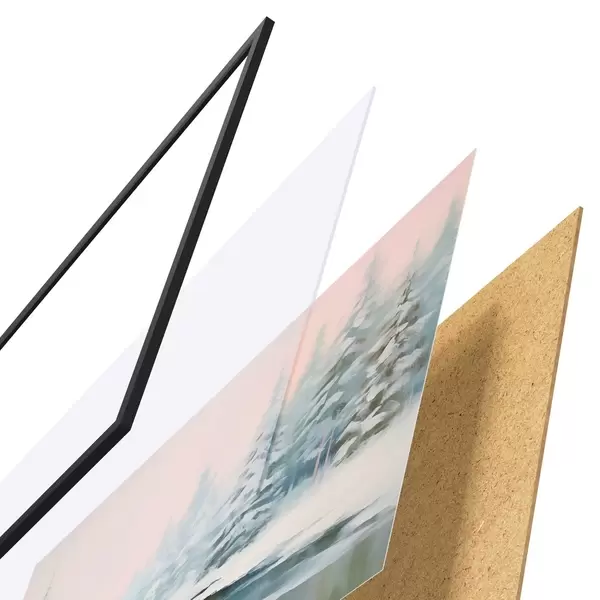 Le poster se compose d'un cadre, d'un plexiglas, d'une image imprimée et d'un support en aggloméré. Le poster peut être immédiatement accroché au mur grâce aux fixations au dos.
