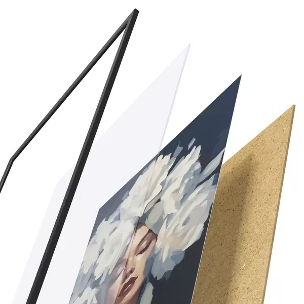 Le poster se compose d'un cadre, d'un plexiglas, d'une image imprimée et d'un support en aggloméré. Le poster peut être immédiatement accroché au mur grâce aux fixations au dos.