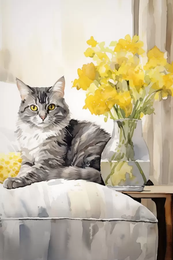 Affiche Chat et fleurs f46426