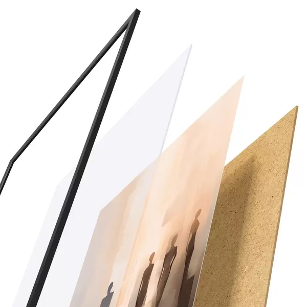 Le poster se compose d'un cadre, d'un plexiglas, d'une image imprimée et d'un support en aggloméré. Le poster peut être immédiatement accroché au mur grâce aux fixations au dos.