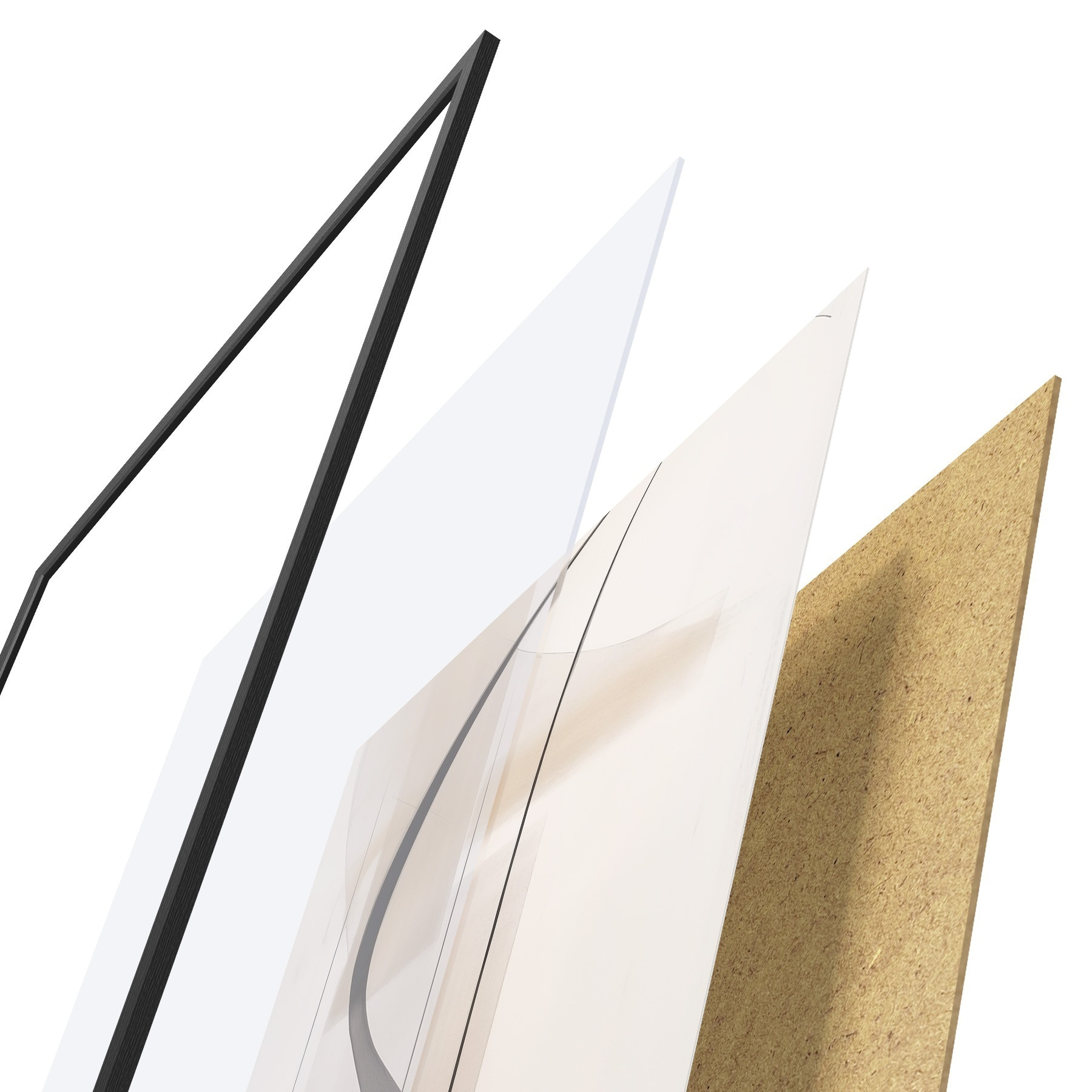 Le poster se compose d'un cadre, d'un plexiglas, d'une image imprimée et d'un support en aggloméré. Le poster peut être immédiatement accroché au mur grâce aux fixations au dos.