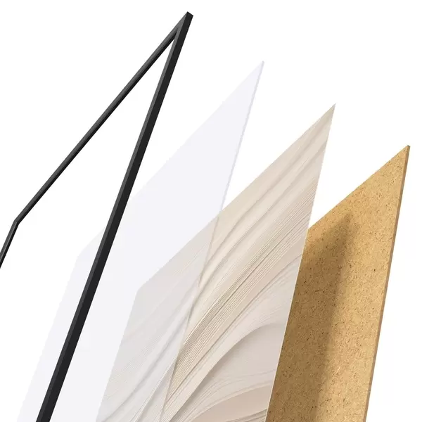 Le poster se compose d'un cadre, d'un plexiglas, d'une image imprimée et d'un support en aggloméré. Le poster peut être immédiatement accroché au mur grâce aux fixations au dos.