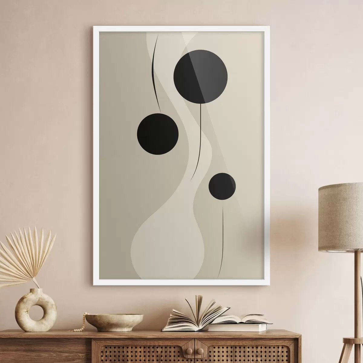 Affiche Cercles minimalistes sur fond beige rehaussés de lignes fluides f46496