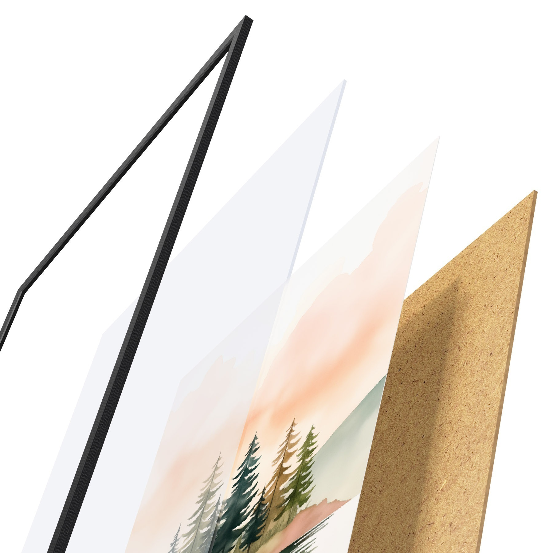 Le poster se compose d'un cadre, d'un plexiglas, d'une image imprimée et d'un support en aggloméré. Le poster peut être immédiatement accroché au mur grâce aux fixations au dos.