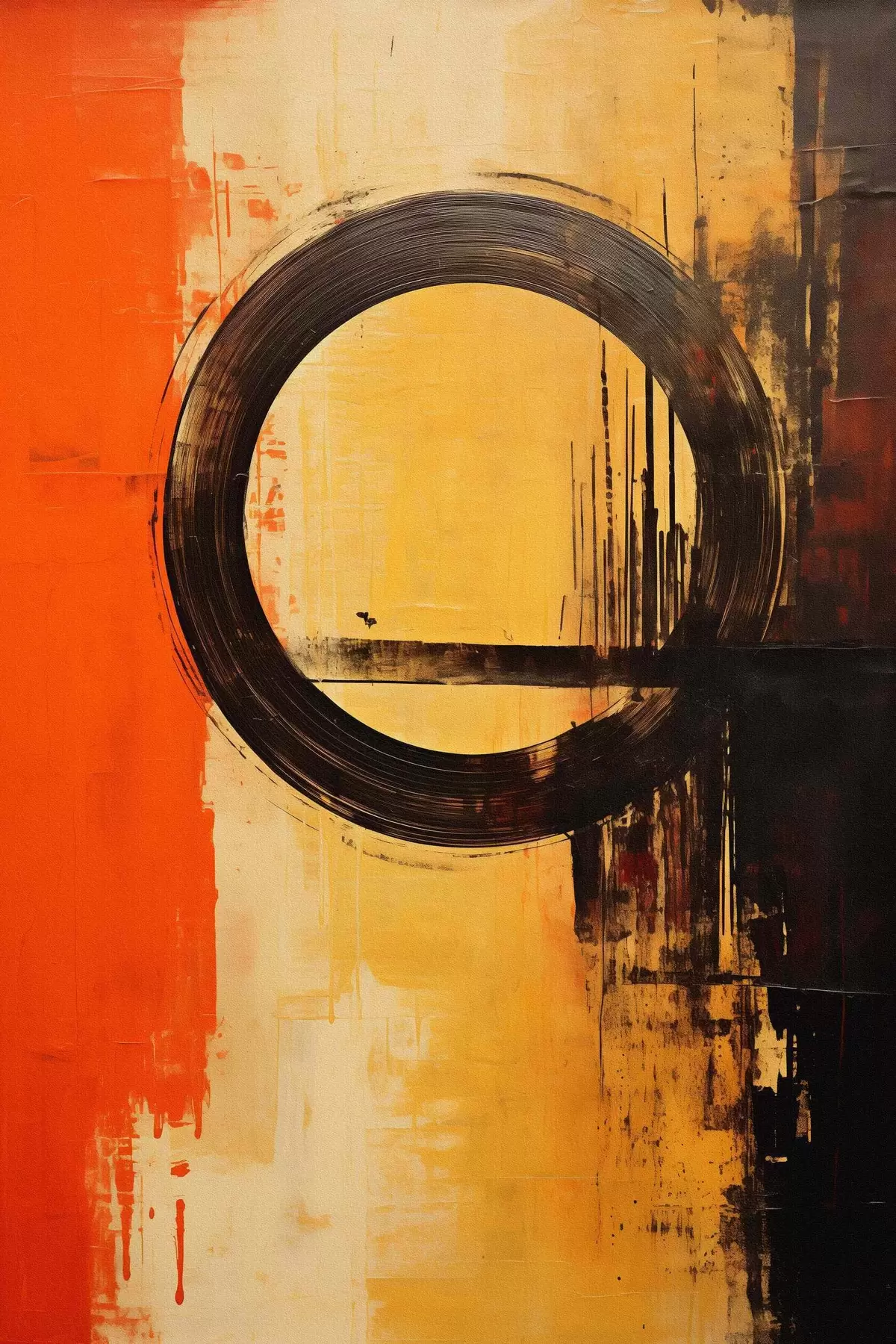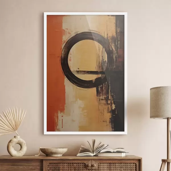 Affiche Résumé avec un anneau noir sur fond sable-terre cuite f46529