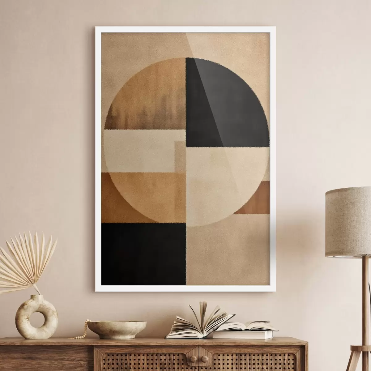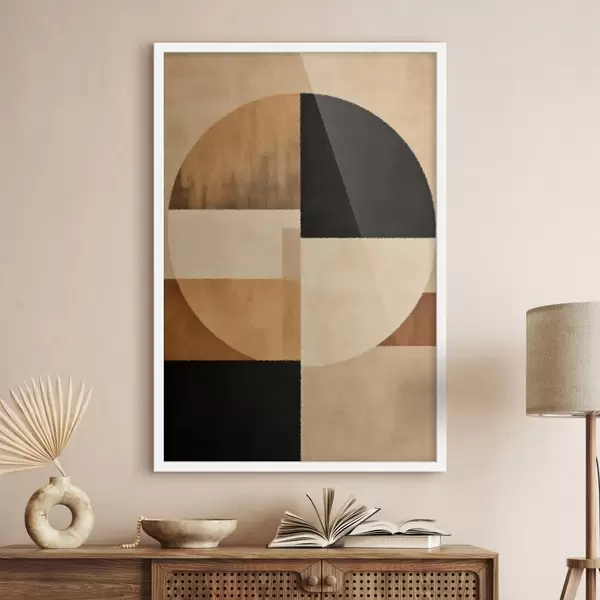 Affiche Demi-cercles et carrés aux tons chauds, texture douce Non f46531