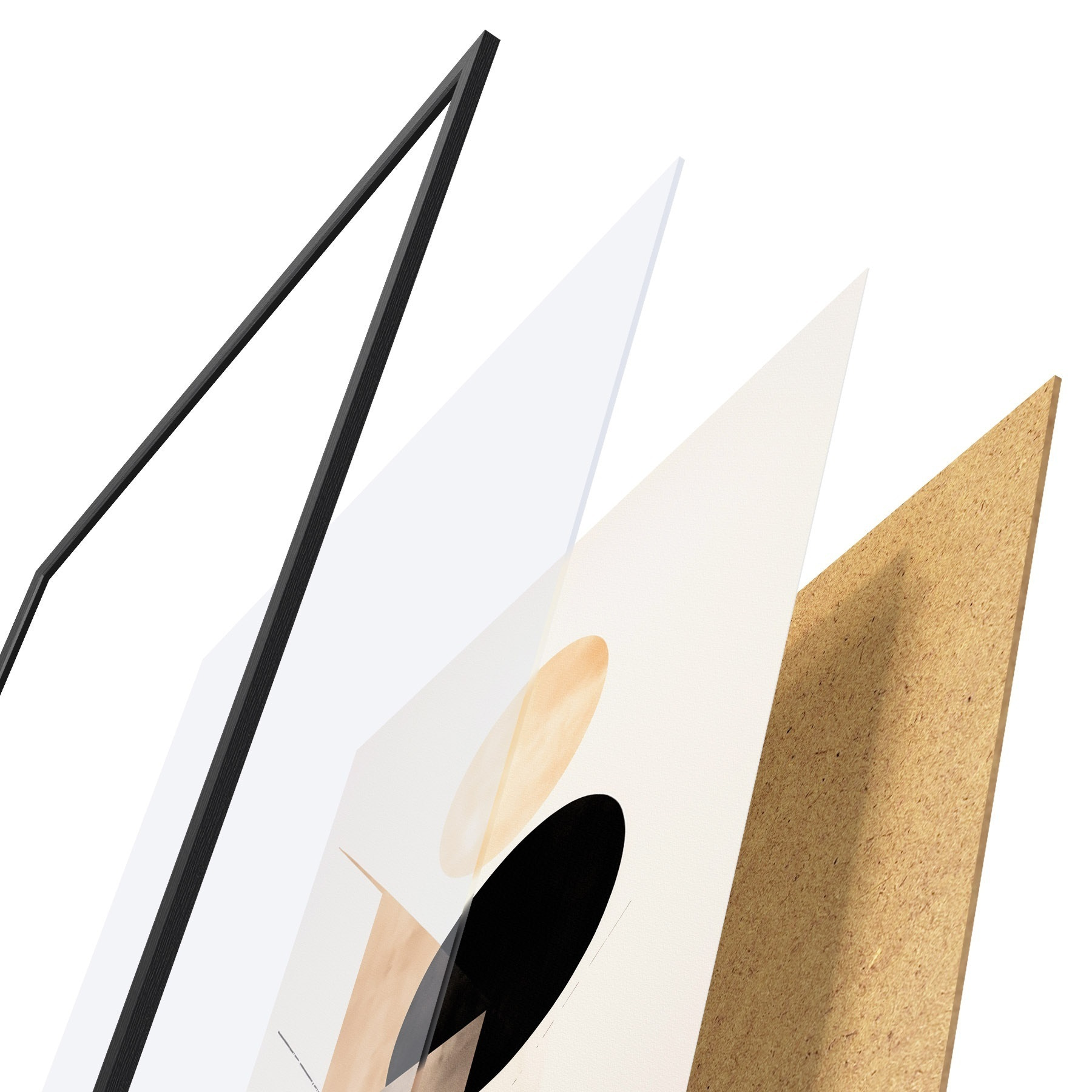 Le poster se compose d'un cadre, d'un plexiglas, d'une image imprimée et d'un support en aggloméré. Le poster peut être immédiatement accroché au mur grâce aux fixations au dos.