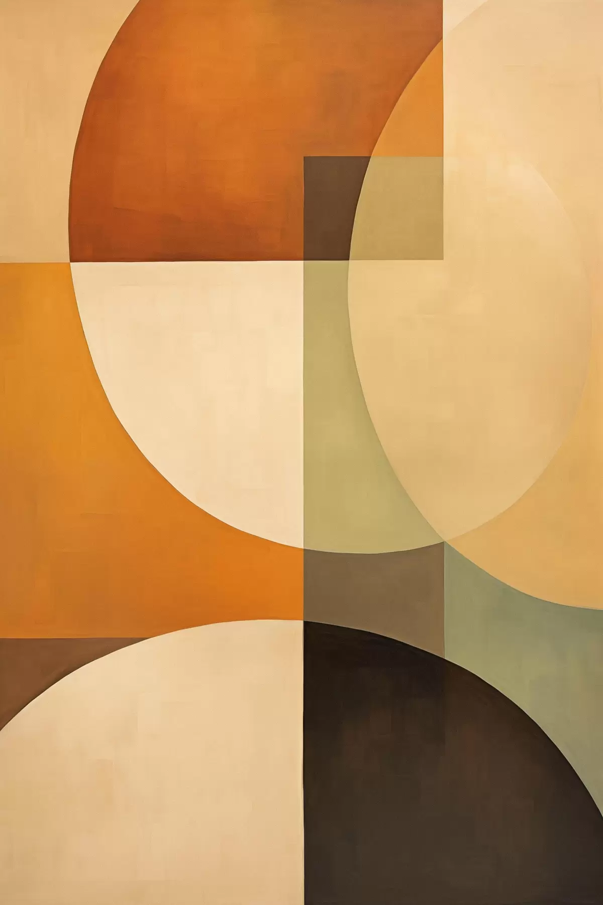 Affiche Grandes formes entrecroisées dans des tons terre cuite-olive f46533