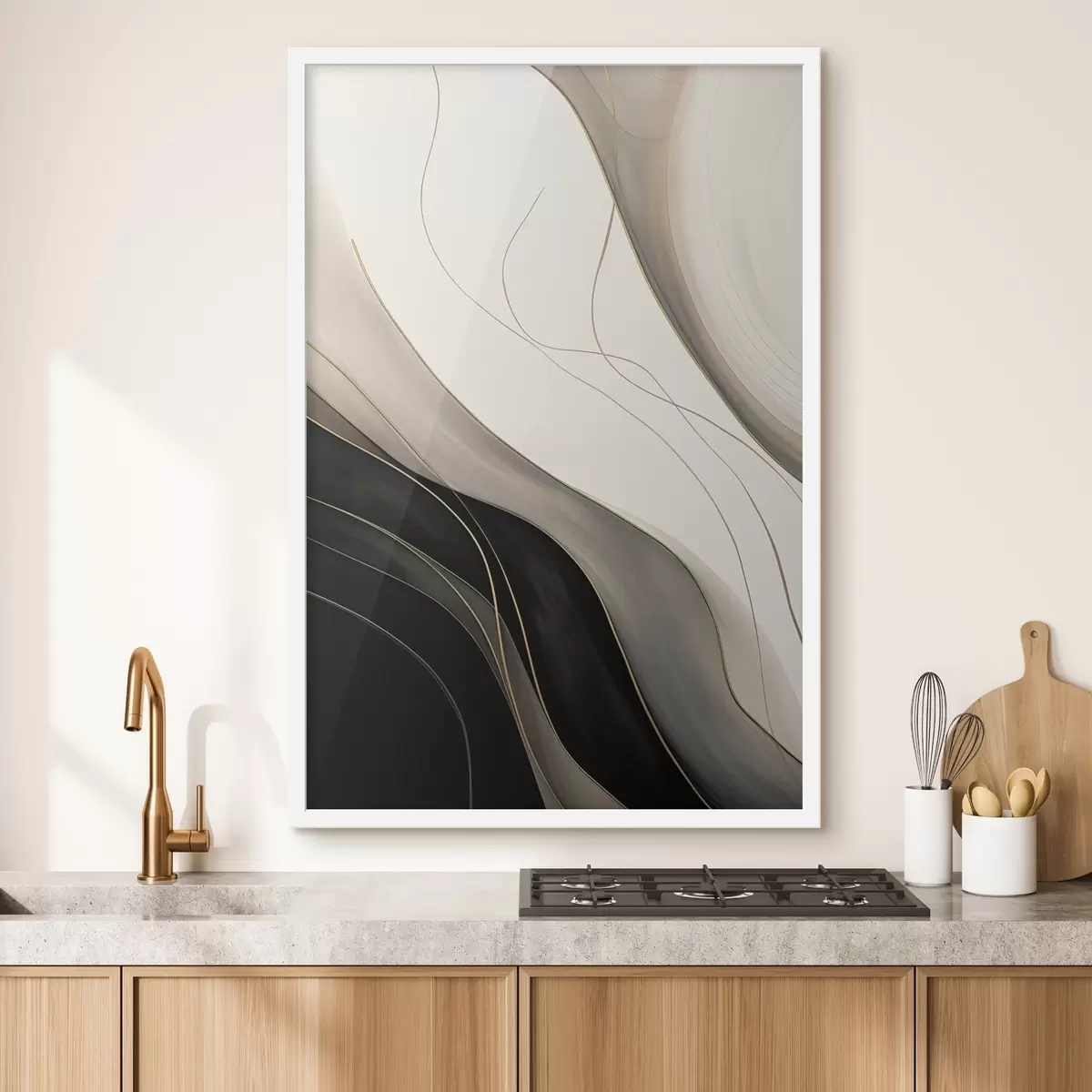 Affiche Vagues noires et beiges avec de fines lignes ocres f46541