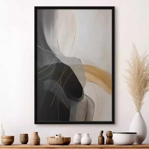 Affiche Courbes douces en noir et beige avec une touche chaleureuse Non f46542