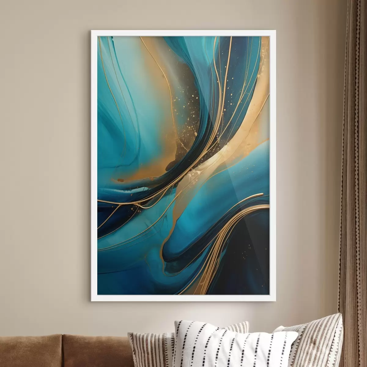 Affiche Flux turquoise avec de fins fils ocre f46543