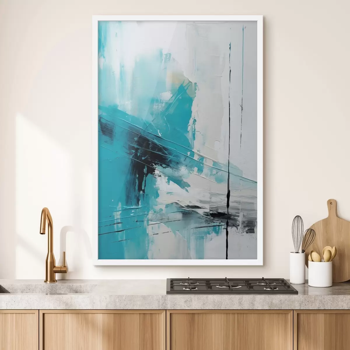 Affiche Trait turquoise sur fond blanc avec un trait noir f46545