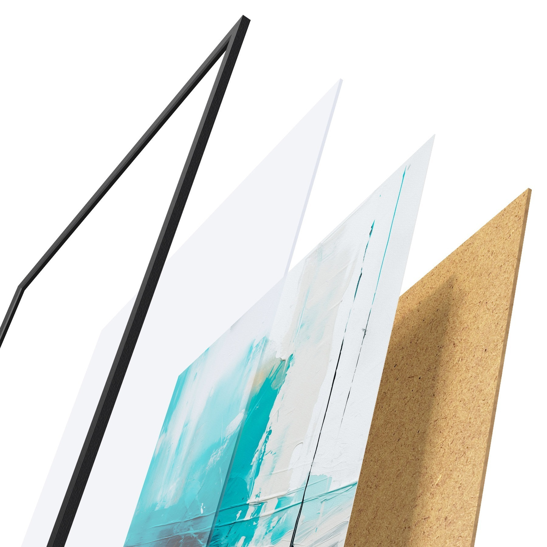 Le poster se compose d'un cadre, d'un plexiglas, d'une image imprimée et d'un support en aggloméré. Le poster peut être immédiatement accroché au mur grâce aux fixations au dos.