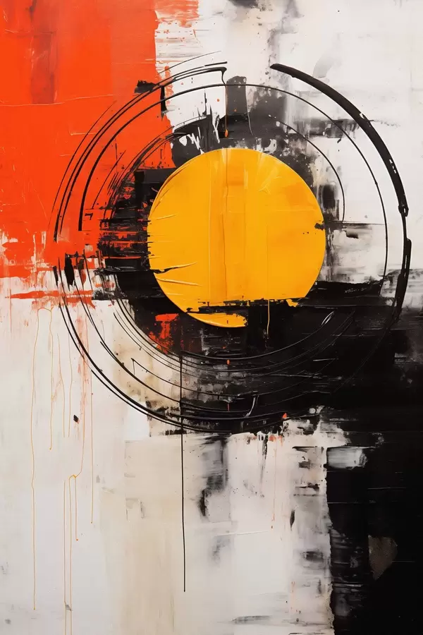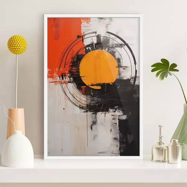 Affiche Disque orange dans un anneau noir, traits et éclaboussures f46550