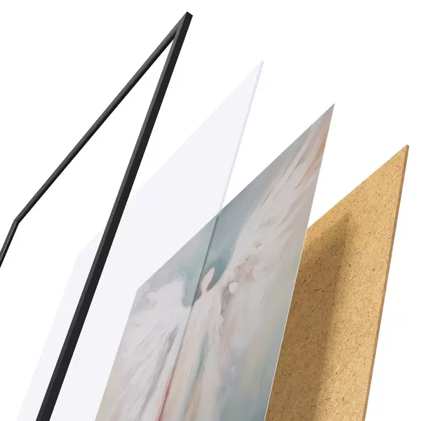 Le poster se compose d'un cadre, d'un plexiglas, d'une image imprimée et d'un support en aggloméré. Le poster peut être immédiatement accroché au mur grâce aux fixations au dos.