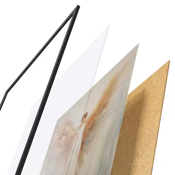 Le poster se compose d'un cadre, d'un plexiglas, d'une image imprimée et d'un support en aggloméré. Le poster peut être immédiatement accroché au mur grâce aux fixations au dos.