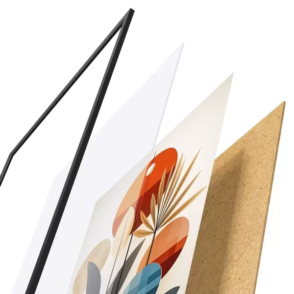 Le poster se compose d'un cadre, d'un plexiglas, d'une image imprimée et d'un support en aggloméré. Le poster peut être immédiatement accroché au mur grâce aux fixations au dos.