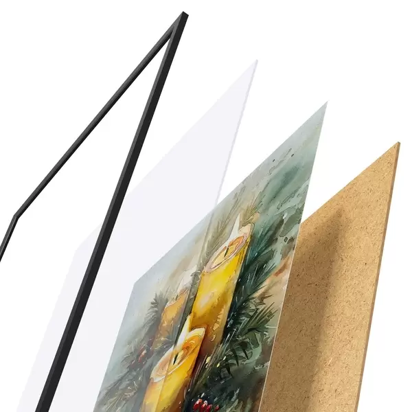 Le poster se compose d'un cadre, d'un plexiglas, d'une image imprimée et d'un support en aggloméré. Le poster peut être immédiatement accroché au mur grâce aux fixations au dos.