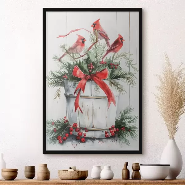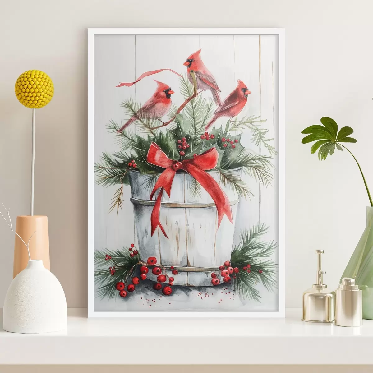 Affiche Oiseaux sur un pot de Noël Non f46607