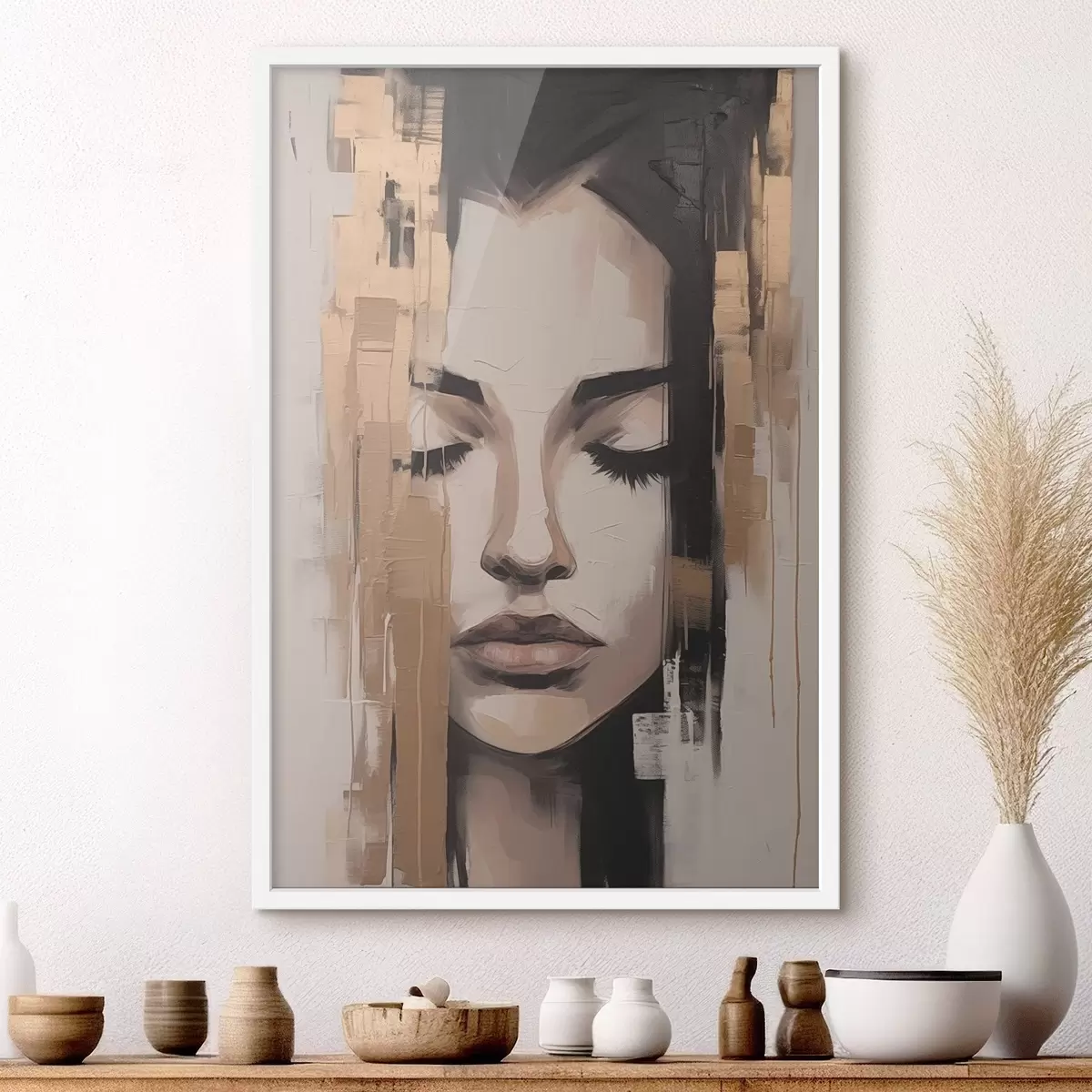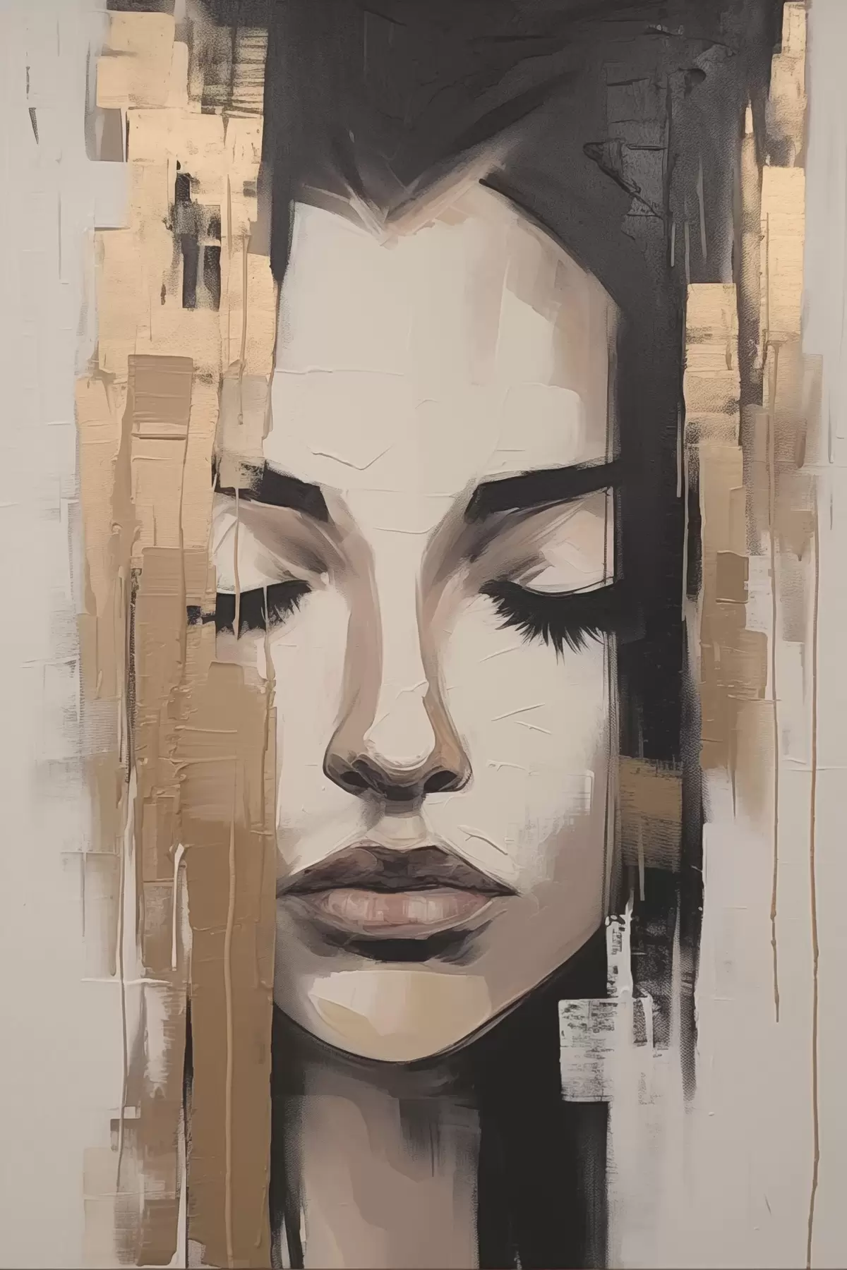 Affiche Portrait d'une femme. Coups de pinceau abstraits. f46733