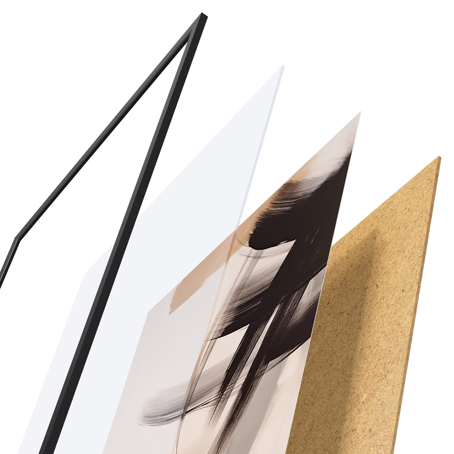 Le poster se compose d'un cadre, d'un plexiglas, d'une image imprimée et d'un support en aggloméré. Le poster peut être immédiatement accroché au mur grâce aux fixations au dos.