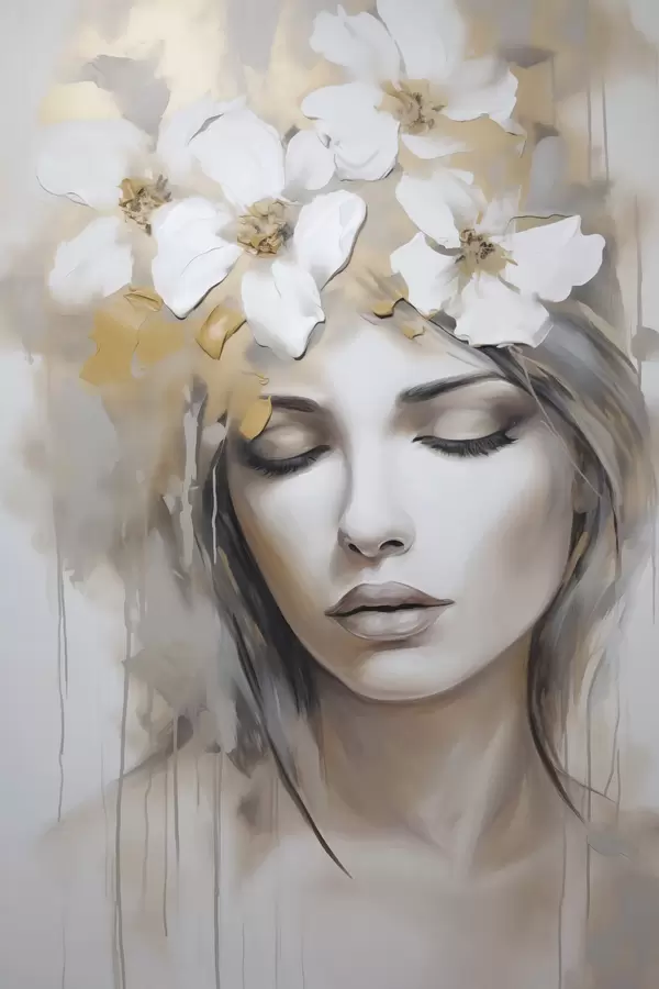 Affiche Portrait abstrait d'une jeune fille avec des fleurs, imitation d'une peinture f46756