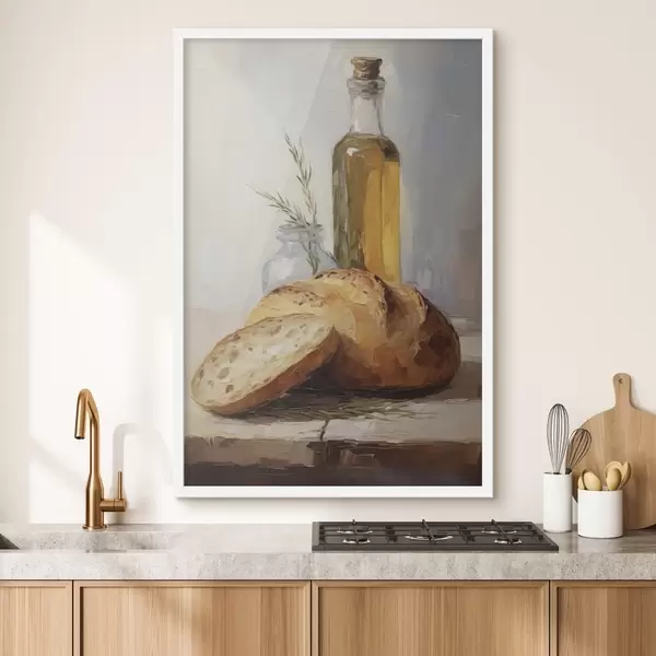 Affiche Du pain et une bouteille d'huile, peinture d'imitation f46759