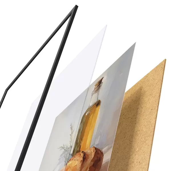 Le poster se compose d'un cadre, d'un plexiglas, d'une image imprimée et d'un support en aggloméré. Le poster peut être immédiatement accroché au mur grâce aux fixations au dos.