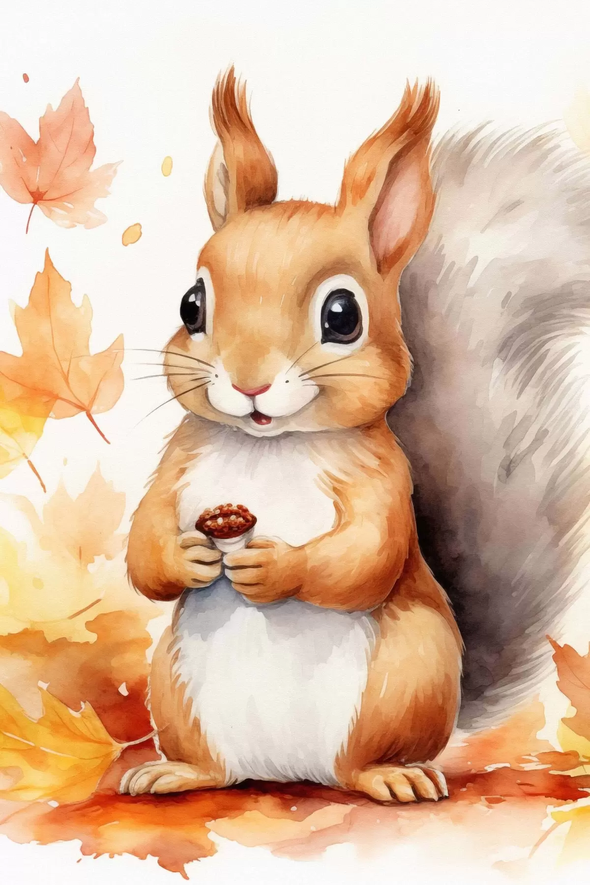 Affiche Adorable écureuil, imitation aquarelle f46766