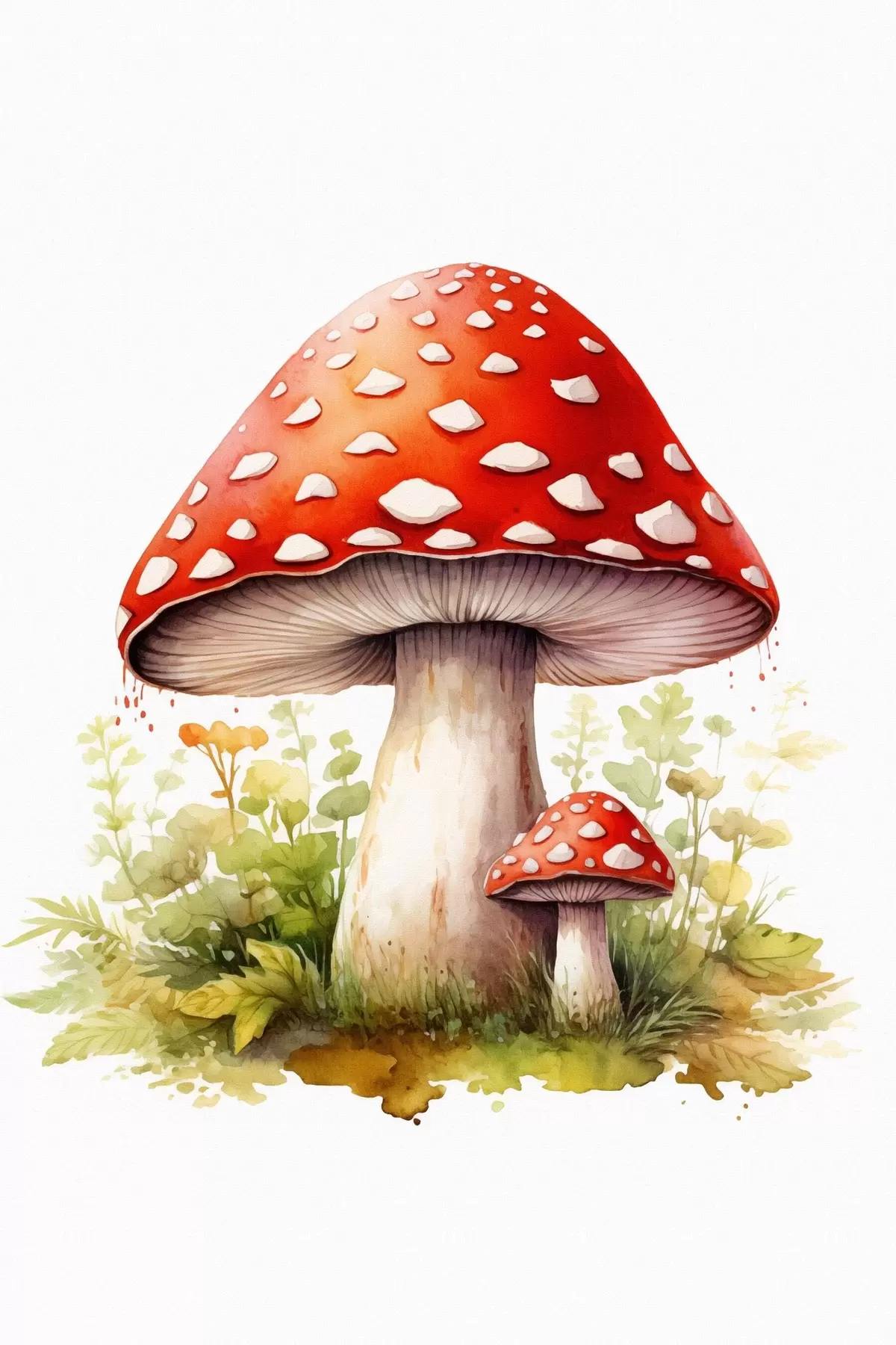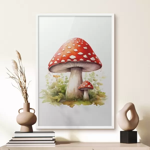 Affiche Champignons des bois, amanite tue-mouche, imitation aquarelle f46767