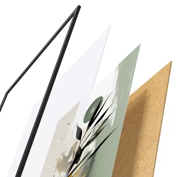 Le poster se compose d'un cadre, d'un plexiglas, d'une image imprimée et d'un support en aggloméré. Le poster peut être immédiatement accroché au mur grâce aux fixations au dos.