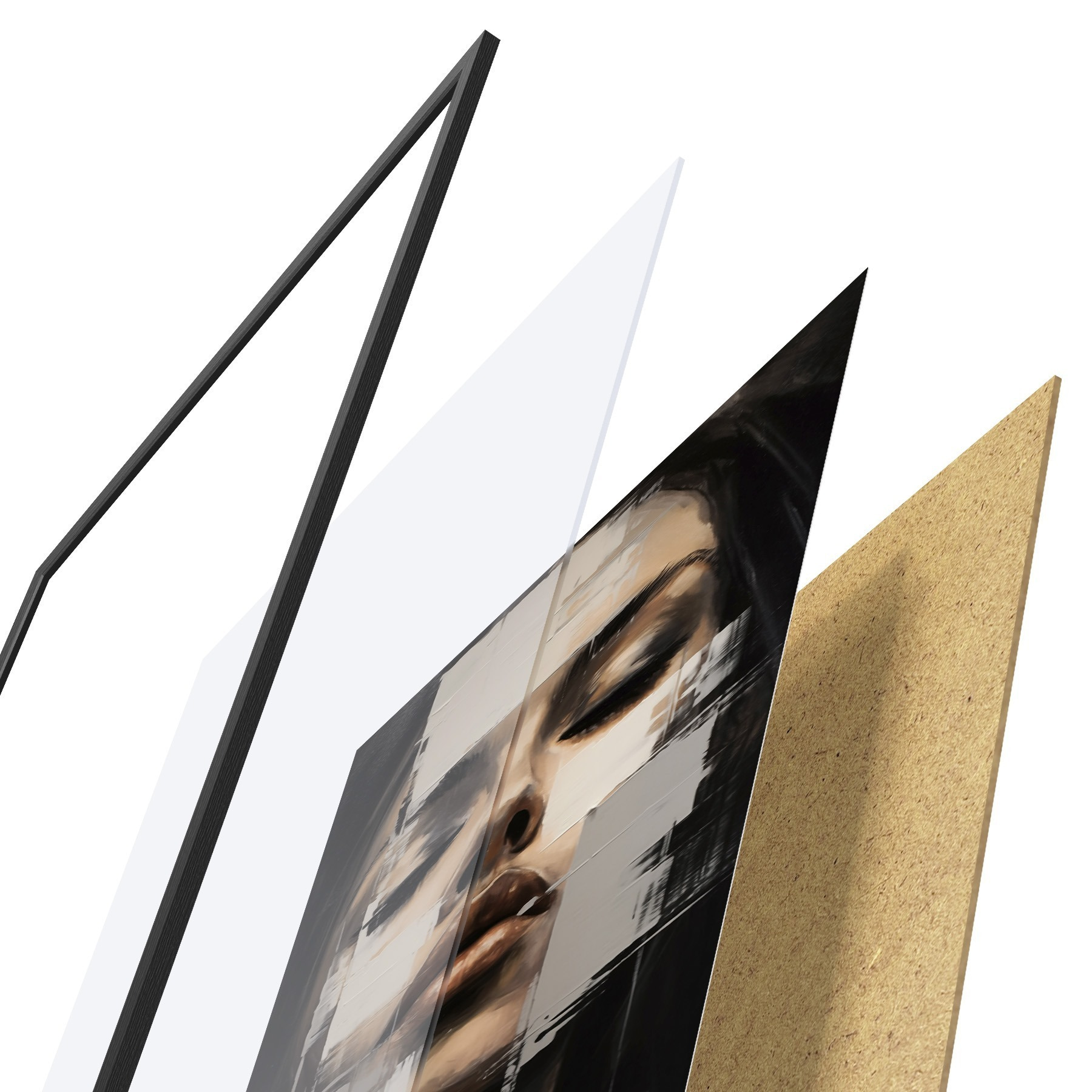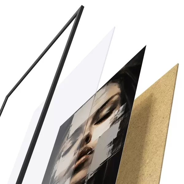 Le poster se compose d'un cadre, d'un plexiglas, d'une image imprimée et d'un support en aggloméré. Le poster peut être immédiatement accroché au mur grâce aux fixations au dos.