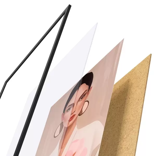 Le poster se compose d'un cadre, d'un plexiglas, d'une image imprimée et d'un support en aggloméré. Le poster peut être immédiatement accroché au mur grâce aux fixations au dos.