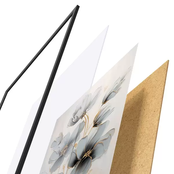 Le poster se compose d'un cadre, d'un plexiglas, d'une image imprimée et d'un support en aggloméré. Le poster peut être immédiatement accroché au mur grâce aux fixations au dos.