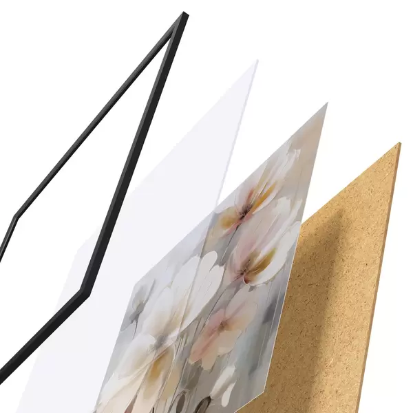 Le poster se compose d'un cadre, d'un plexiglas, d'une image imprimée et d'un support en aggloméré. Le poster peut être immédiatement accroché au mur grâce aux fixations au dos.