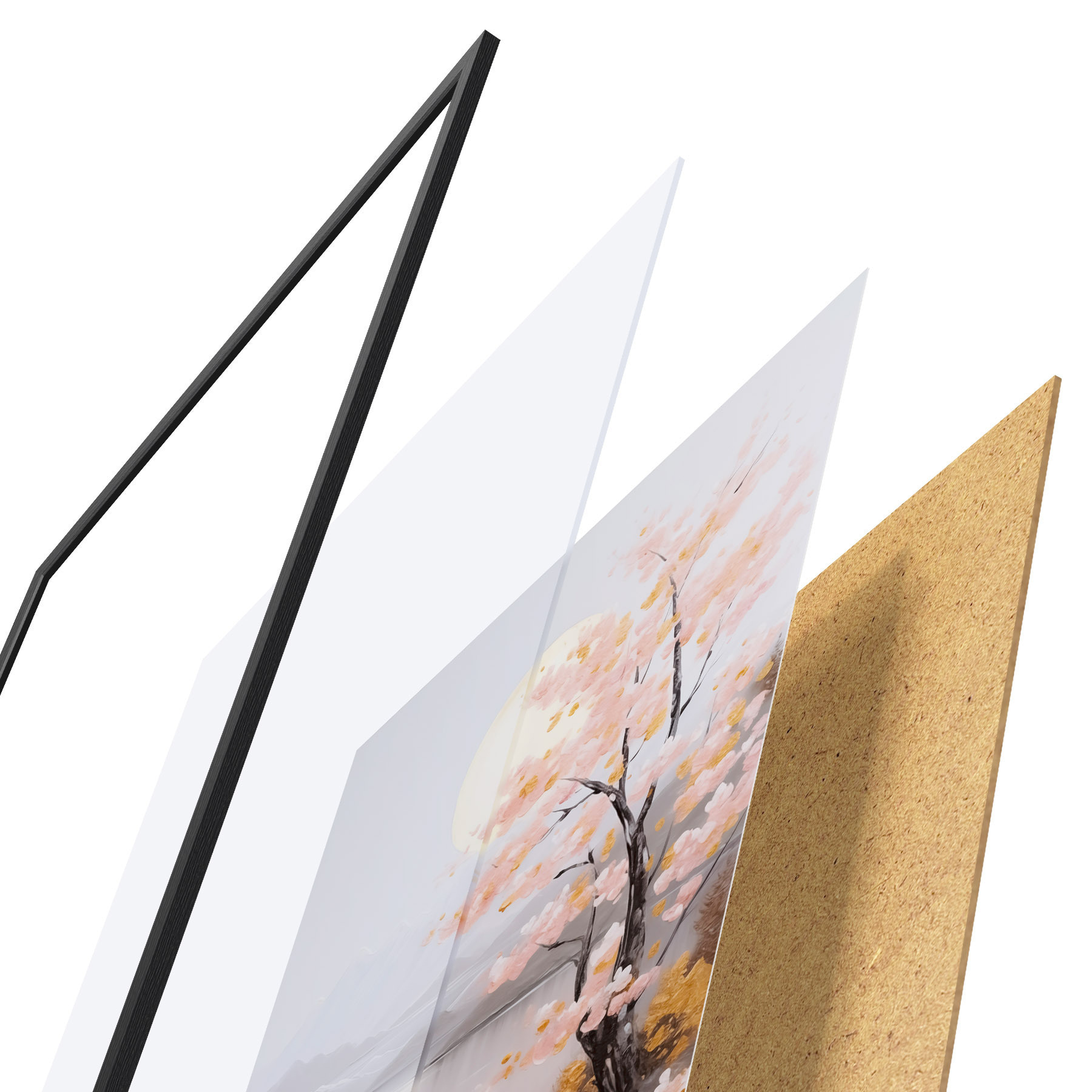 Le poster se compose d'un cadre, d'un plexiglas, d'une image imprimée et d'un support en aggloméré. Le poster peut être immédiatement accroché au mur grâce aux fixations au dos.