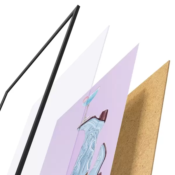 Le poster se compose d'un cadre, d'un plexiglas, d'une image imprimée et d'un support en aggloméré. Le poster peut être immédiatement accroché au mur grâce aux fixations au dos.