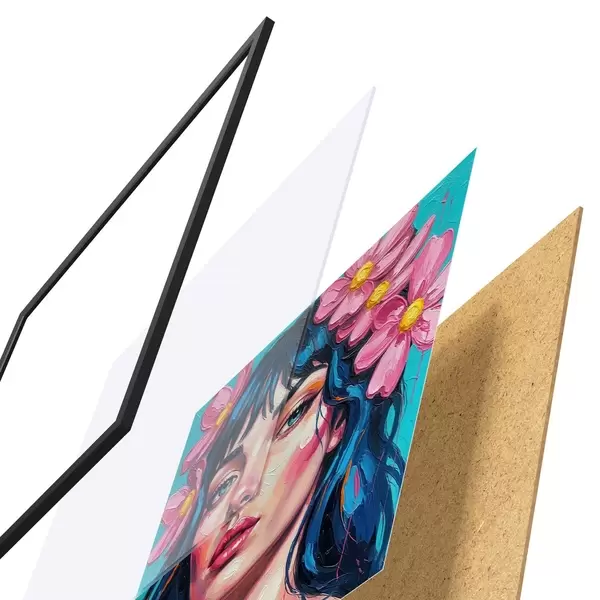 Le poster se compose d'un cadre, d'un plexiglas, d'une image imprimée et d'un support en aggloméré. Le poster peut être immédiatement accroché au mur grâce aux fixations au dos.