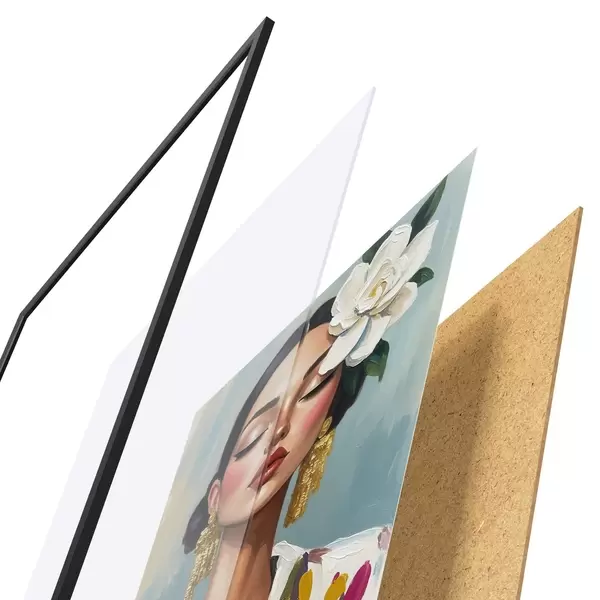 Le poster se compose d'un cadre, d'un plexiglas, d'une image imprimée et d'un support en aggloméré. Le poster peut être immédiatement accroché au mur grâce aux fixations au dos.