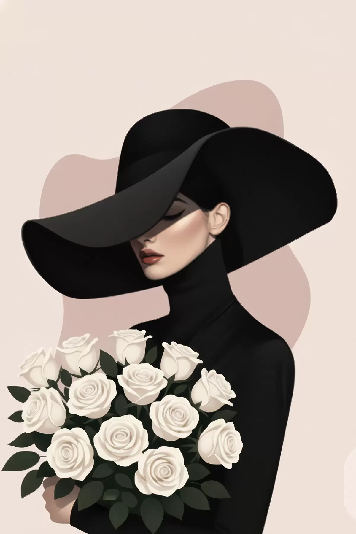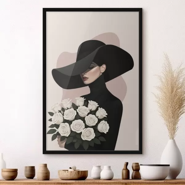 Affiche Fille avec un bouquet de roses Non f46854