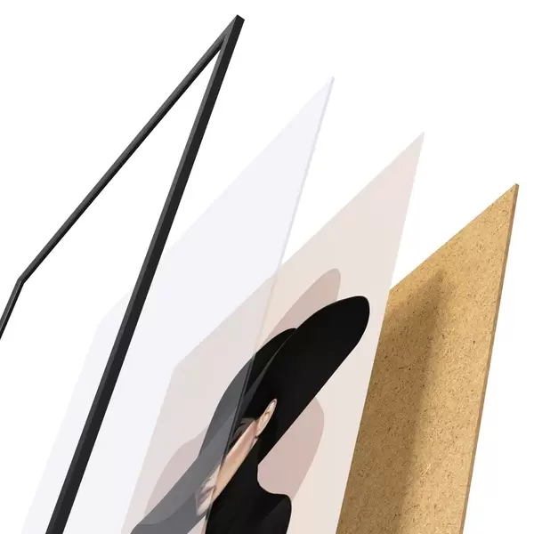Le poster se compose d'un cadre, d'un plexiglas, d'une image imprimée et d'un support en aggloméré. Le poster peut être immédiatement accroché au mur grâce aux fixations au dos.