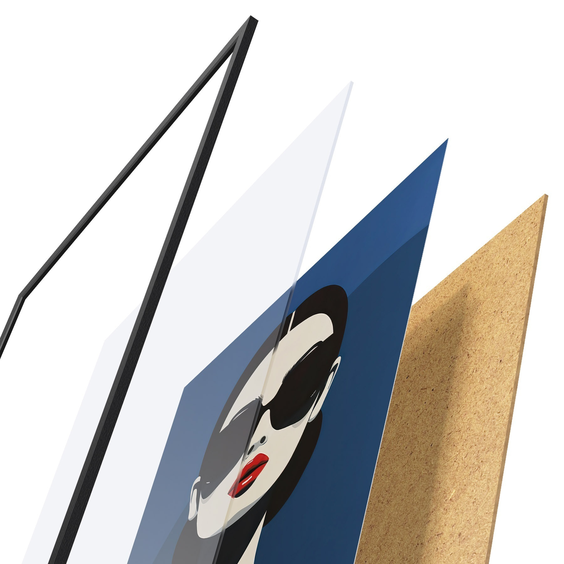 Le poster se compose d'un cadre, d'un plexiglas, d'une image imprimée et d'un support en aggloméré. Le poster peut être immédiatement accroché au mur grâce aux fixations au dos.
