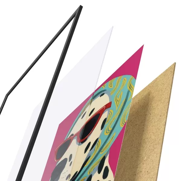 Le poster se compose d'un cadre, d'un plexiglas, d'une image imprimée et d'un support en aggloméré. Le poster peut être immédiatement accroché au mur grâce aux fixations au dos.