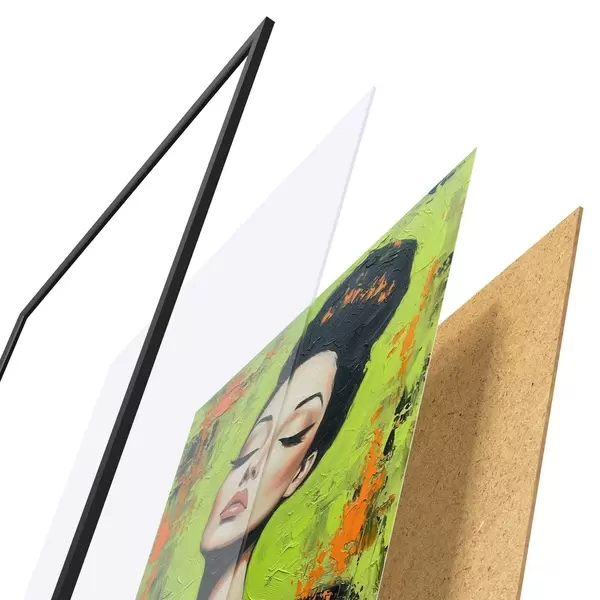 Le poster se compose d'un cadre, d'un plexiglas, d'une image imprimée et d'un support en aggloméré. Le poster peut être immédiatement accroché au mur grâce aux fixations au dos.