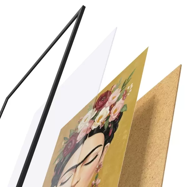 Le poster se compose d'un cadre, d'un plexiglas, d'une image imprimée et d'un support en aggloméré. Le poster peut être immédiatement accroché au mur grâce aux fixations au dos.