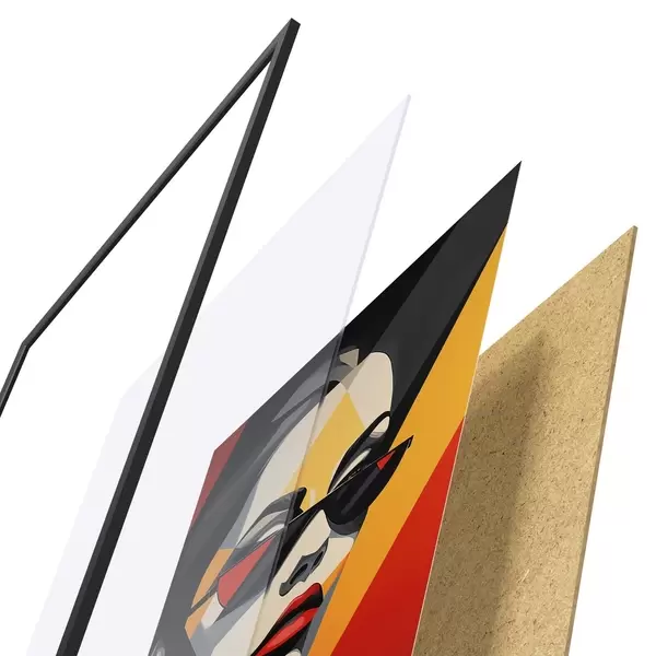Le poster se compose d'un cadre, d'un plexiglas, d'une image imprimée et d'un support en aggloméré. Le poster peut être immédiatement accroché au mur grâce aux fixations au dos.