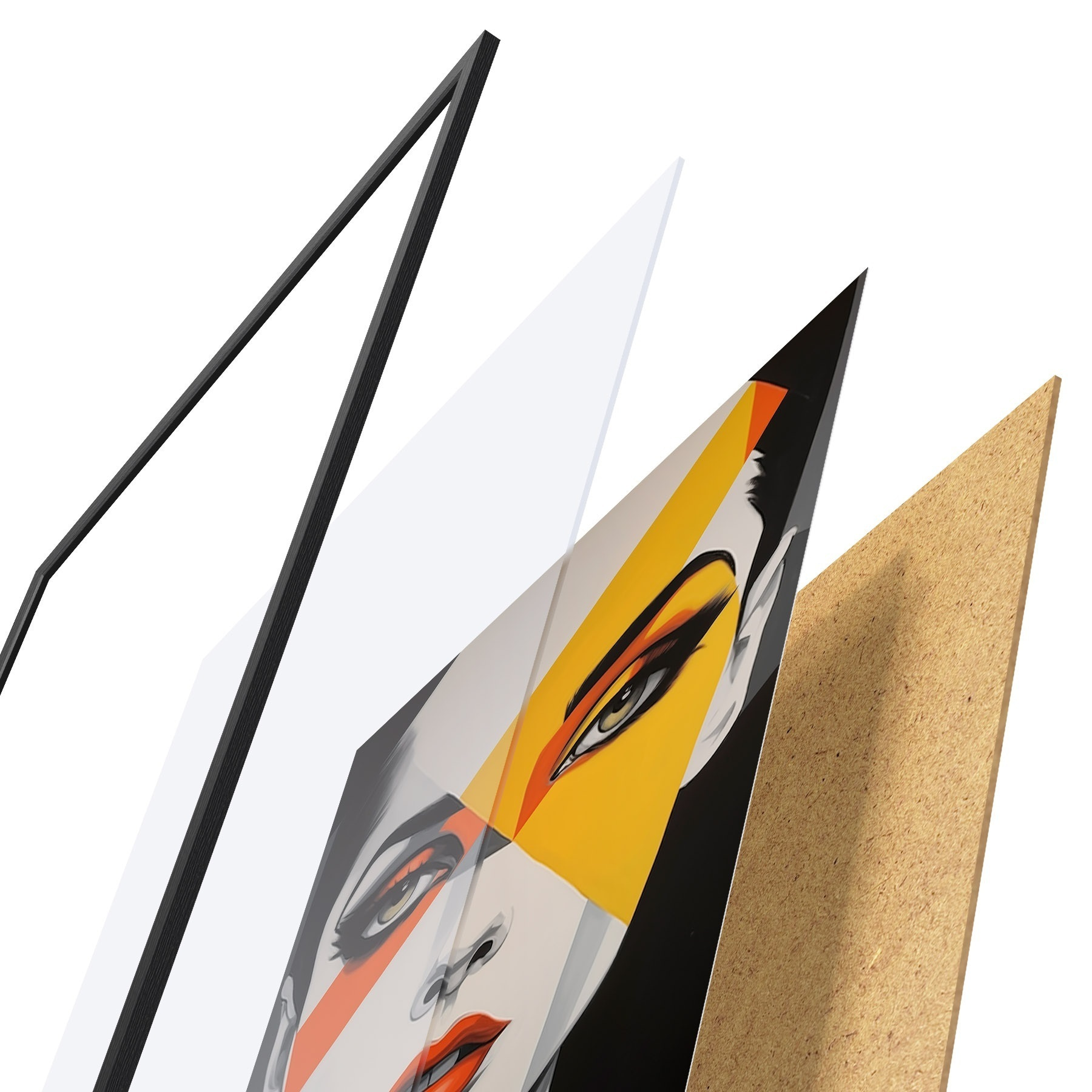 Le poster se compose d'un cadre, d'un plexiglas, d'une image imprimée et d'un support en aggloméré. Le poster peut être immédiatement accroché au mur grâce aux fixations au dos.