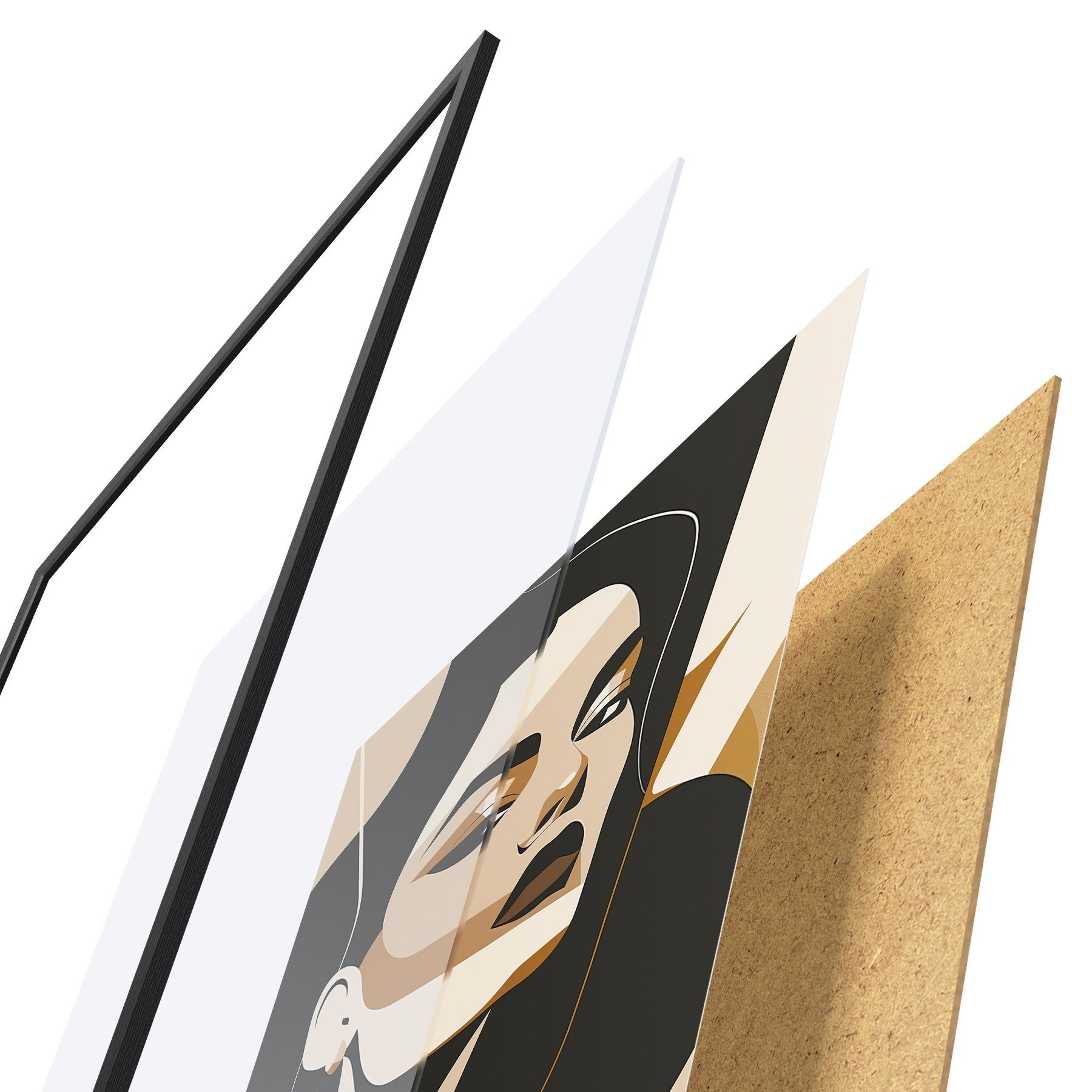Le poster se compose d'un cadre, d'un plexiglas, d'une image imprimée et d'un support en aggloméré. Le poster peut être immédiatement accroché au mur grâce aux fixations au dos.